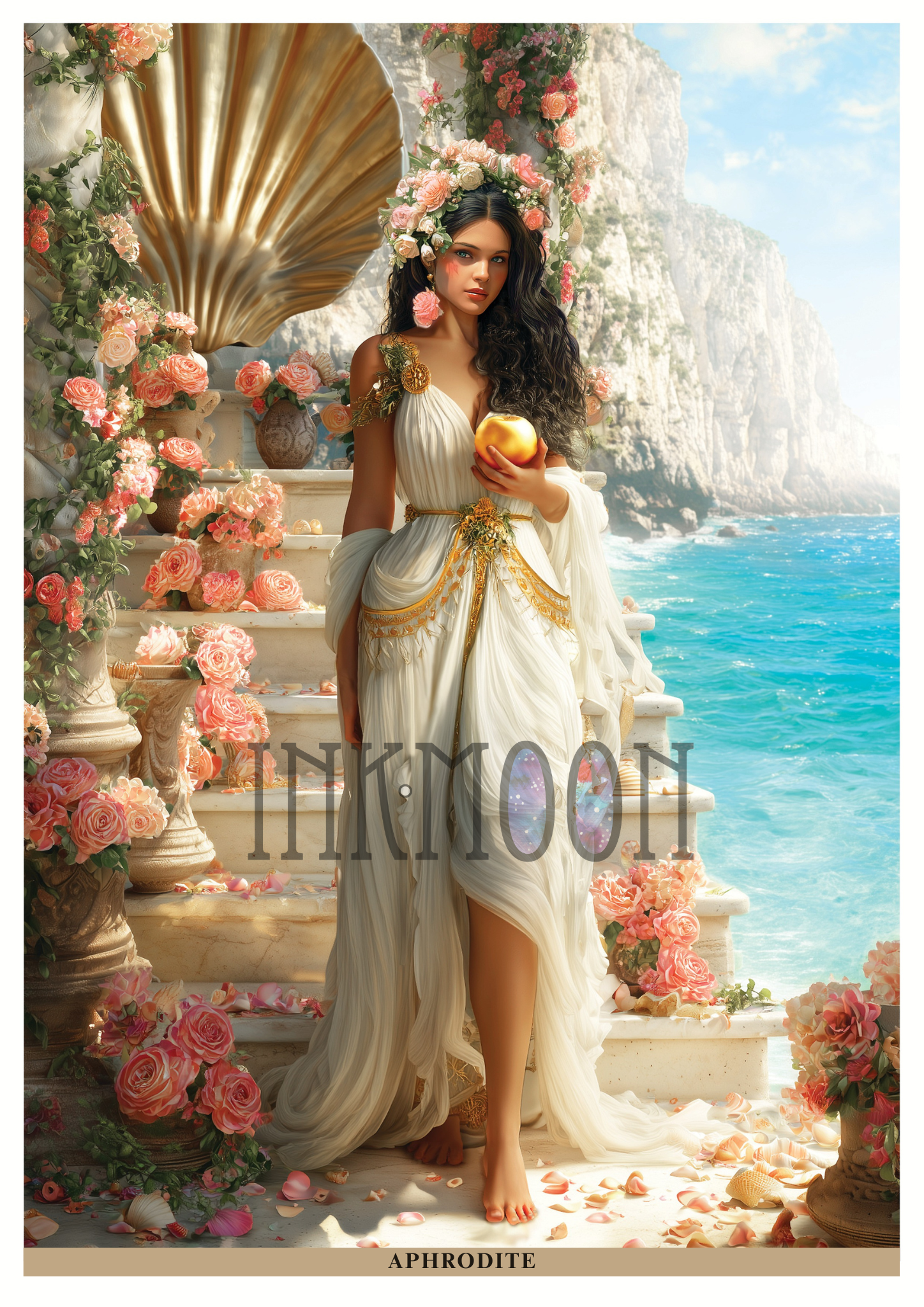This piece is more than art—it is a portal to her presence, a visual invocation of Aphrodite as the eternal embodiment of passion, self-love, and divine attraction. She calls us to open our hearts, honour our worth, and welcome the joy and abundance that comes from aligning with the energy of love.