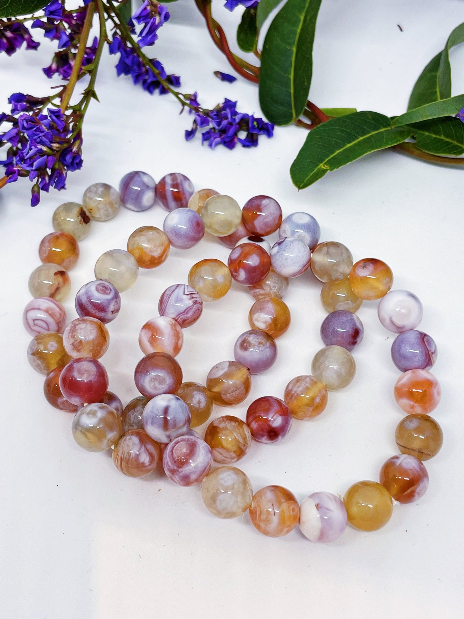 One beautiful rare Rainbow Milk Agate Bracelet will be intuitively chosen for you. It stretches to fit.
