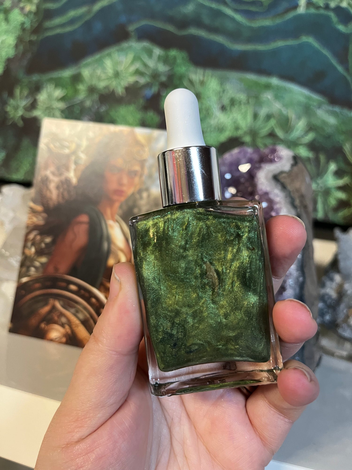 To add an extra touch of magic, each oil contains skin-safe shimmering mica, chosen to complement the goddess’s essence. When shaken, your oil will glow with a mesmerising swirl, enhancing its divine energy.