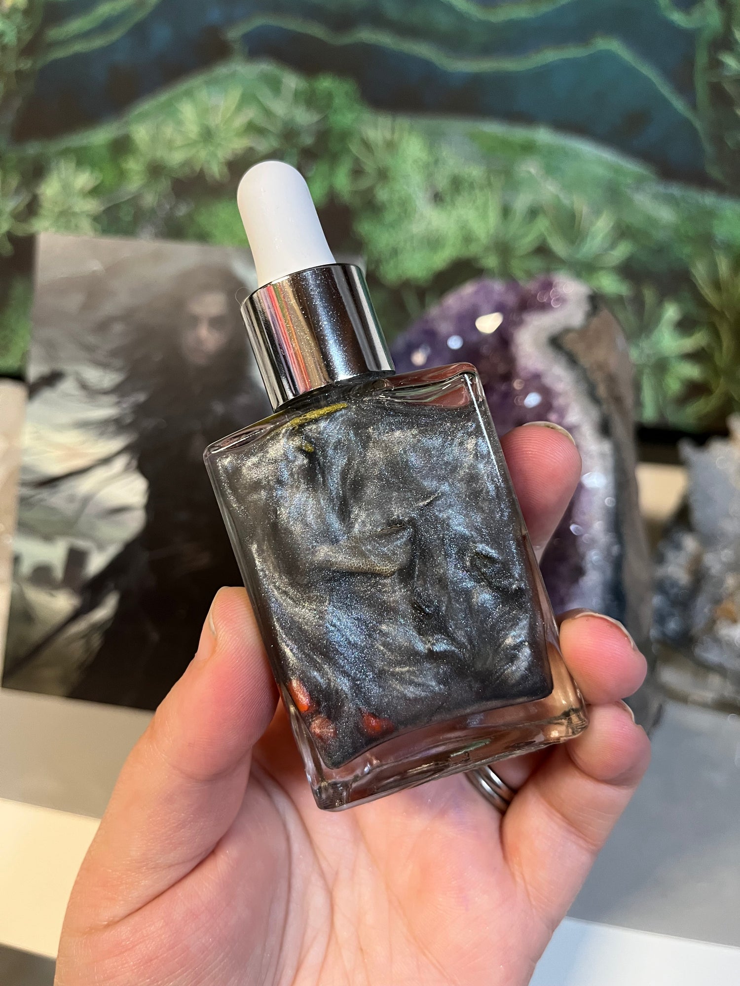 Base: MCT oil infused with sacred botanicals, crystals, and essential oils