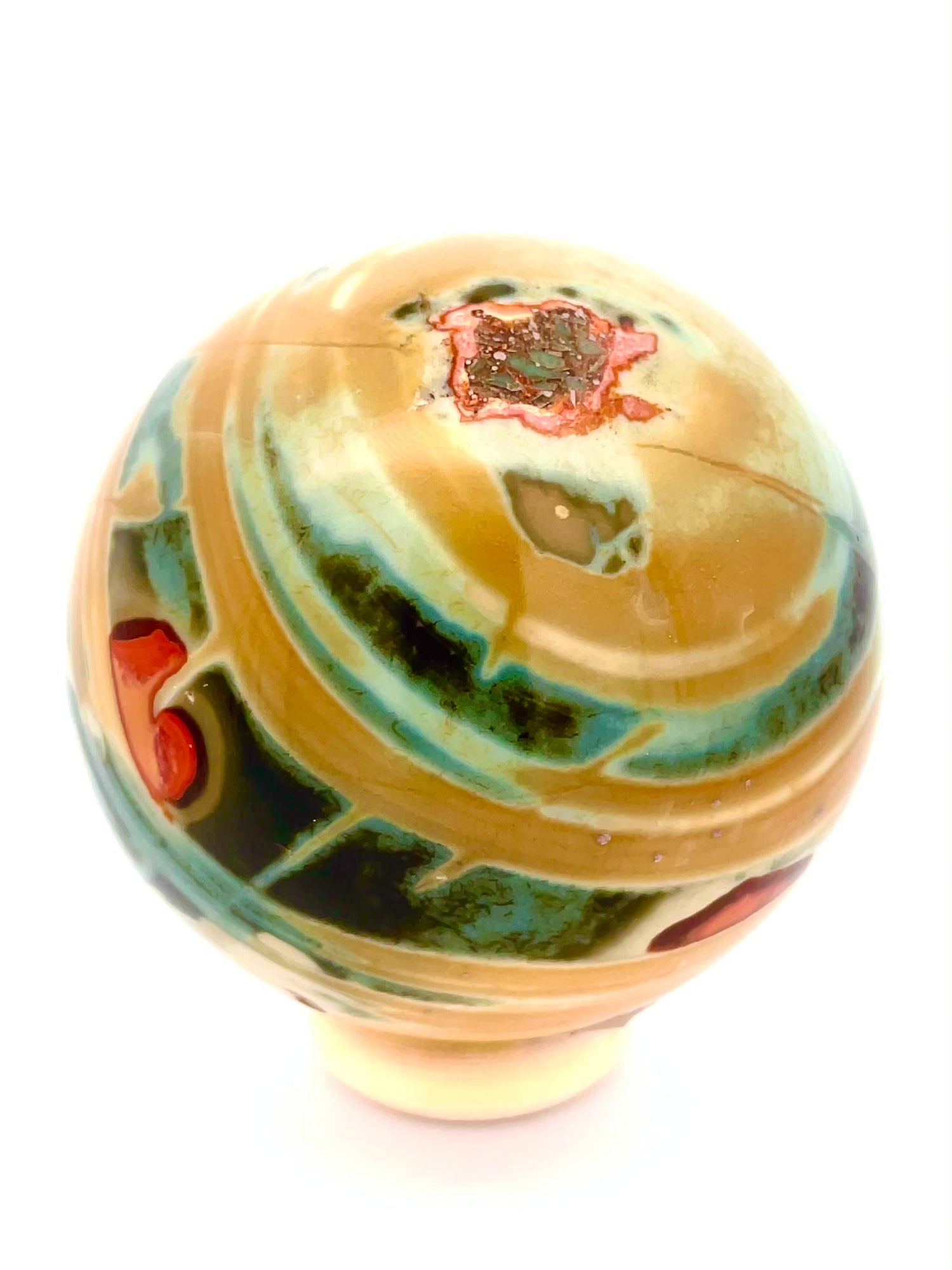 Mixed with beautiful bands of colours, our Polychrome Jasper Sphere is a sight to behold.